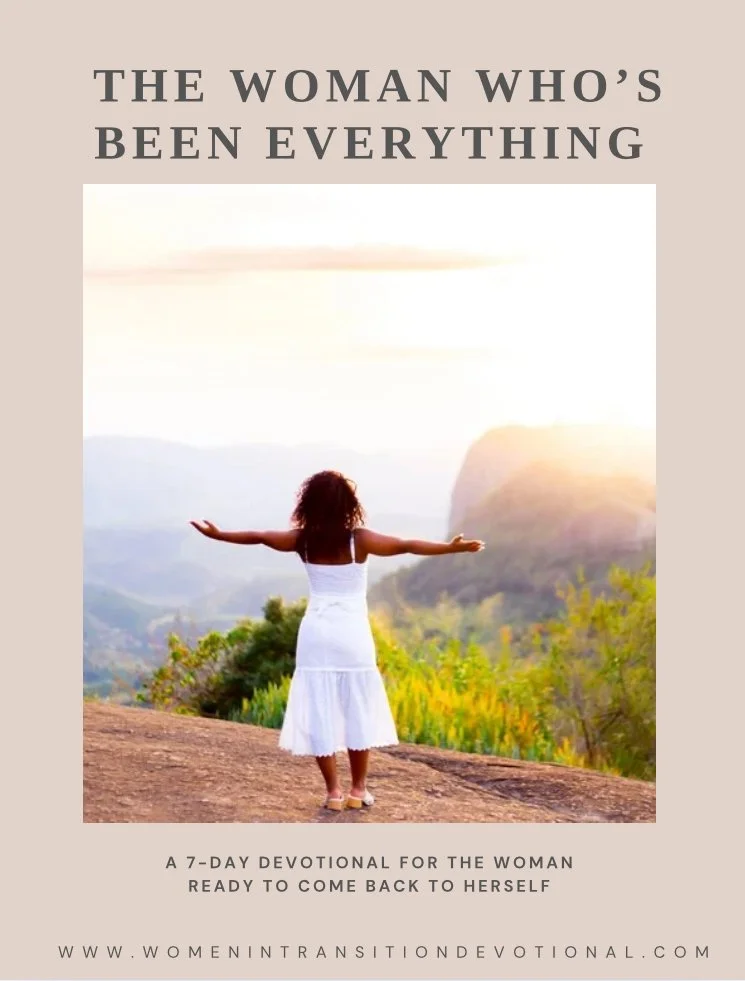 “The Woman Who’s Been Everything” is a 7-day devotional for faith-led women navigating transition whether its divorce, rediscovery, grief, or simply the quiet ache of starting over.